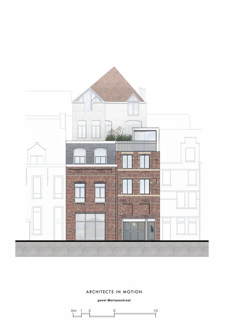 Architects in Motion (AIM) is erin geslaagd om de wensen van de bouwheer perfect te vertalen in een toonaangevend project. Vertrekkend vanuit een deels beschermd historisch pand met een specifieke historiek op vlak van diverse soms onafgewerkte verbouwingen, renovaties en bouwovertredingen en bepalende normen op vlak van stedenbouw, erfgoed en brandweer, heeft het project nu alle kwaliteiten in huis om in te spelen op de noden die het wonen in de oude stadskern stelt. Om tot dit resultaat te komen maakte AIM op een intelligente manier gebruik van 3D-printing en BIM, digitale hulpmiddelen die geen doel op zich zijn maar een nieuwe communicatievorm met alle stakeholders.
