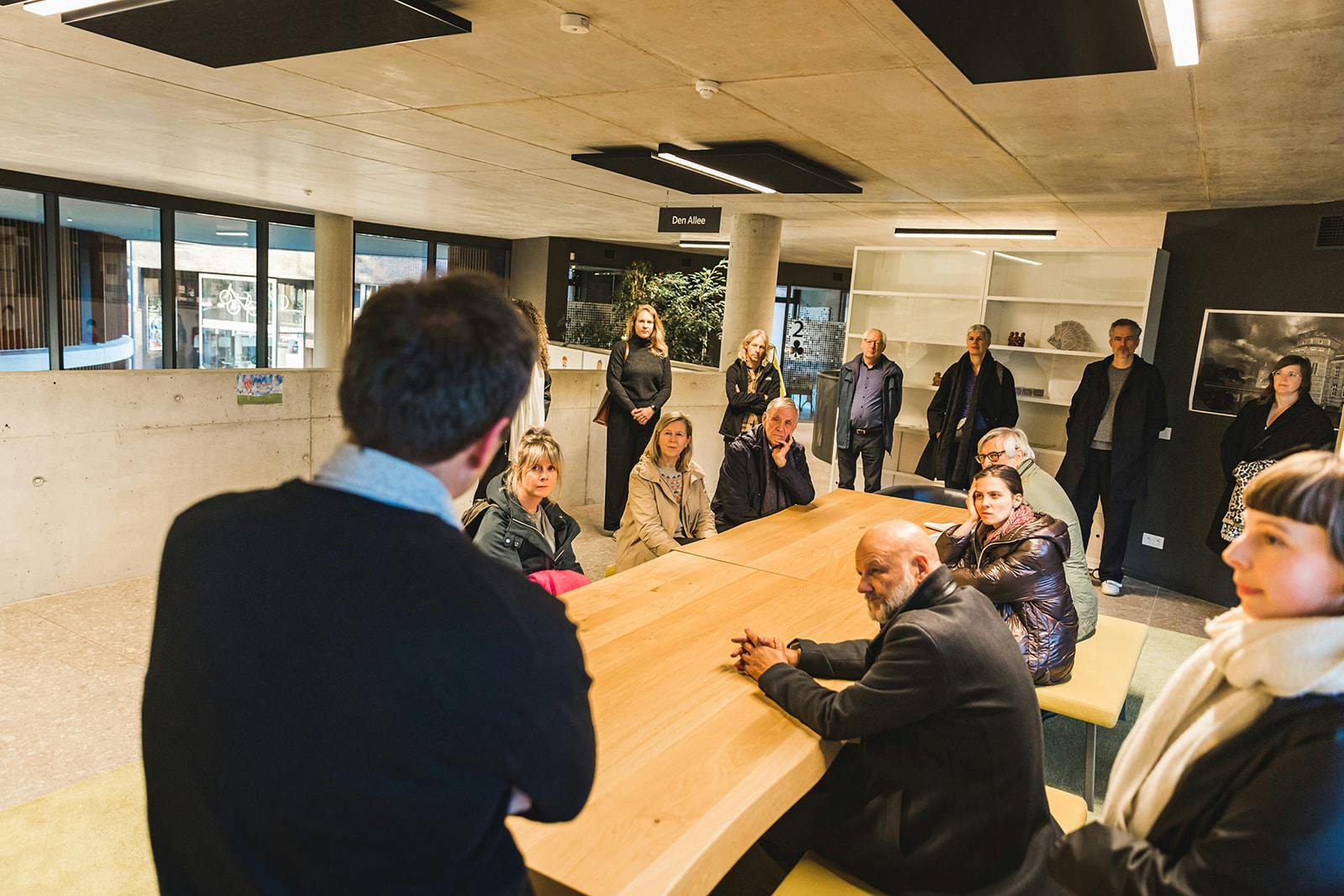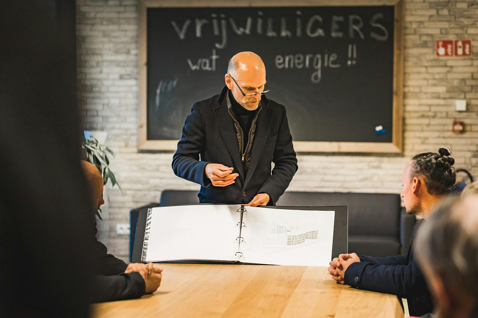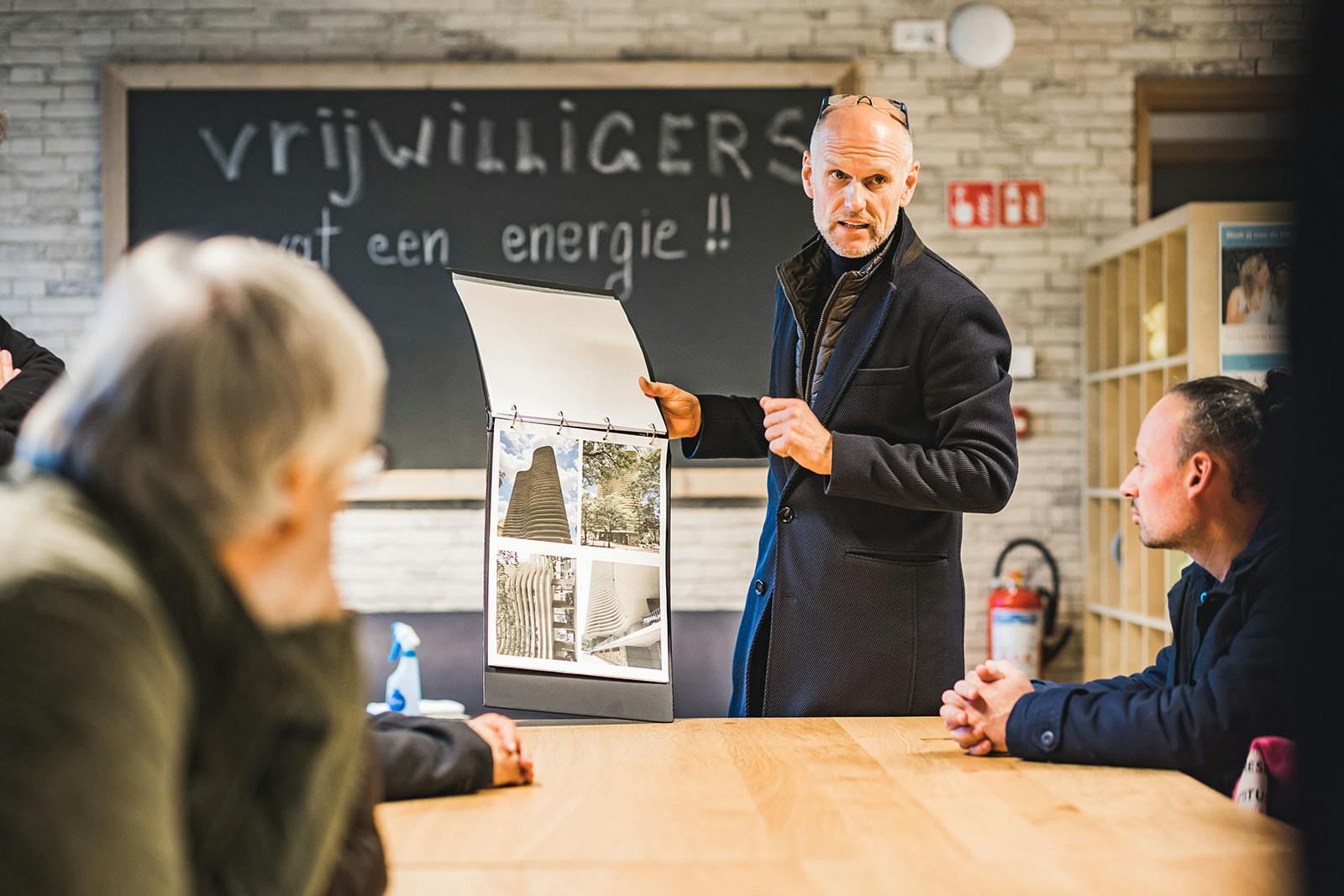 Tijdens het evenement gaven architect Bart Janssens en Jan Bal, directeur van CAW De Kempen, inzicht in het ontwerp en de sociale missie van het gebouw.