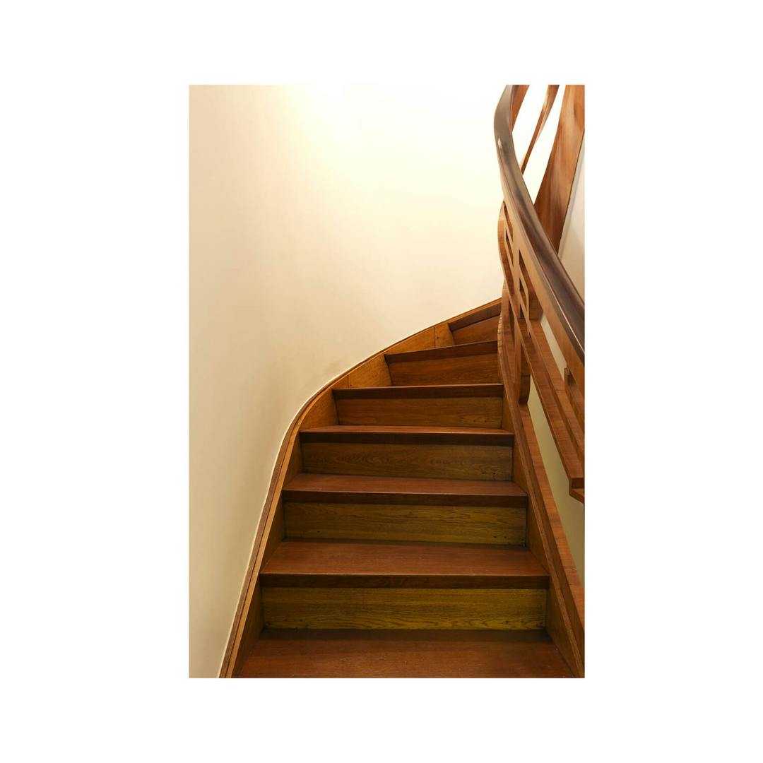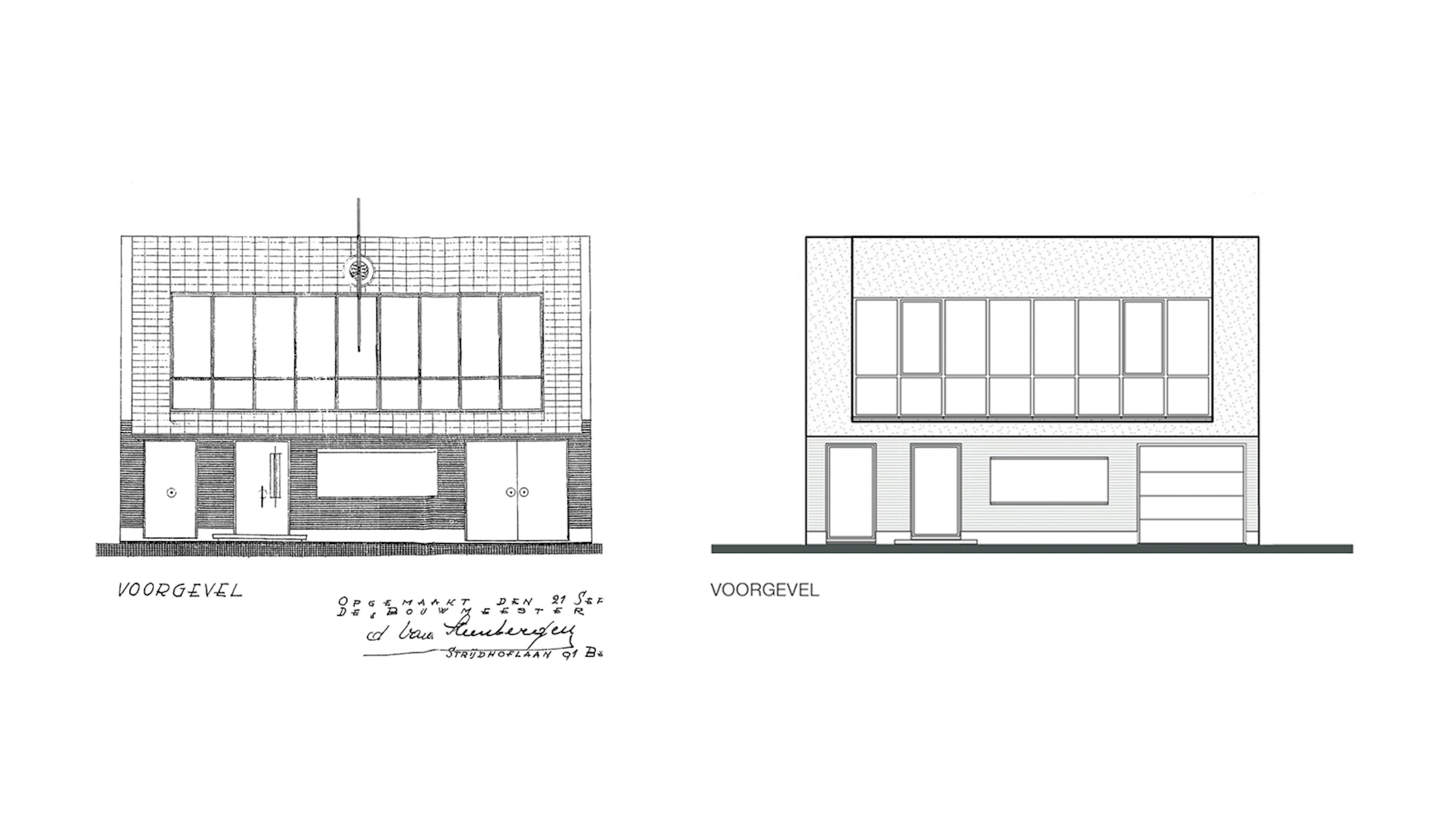 Het ontwerpproces was een evenwichtsoefening tussen het handhaven van het jonge, verwaarloosde erfgoed en het realiseren van hedendaags wooncomfort voor de opdrachtgever. Om te voldoen aan de vraag van de opdrachtgever onderging de bestaande woning een grondige metamorfose, dit met de nodige aandacht voor de huidige EPB-eisen. De woning werd volledig open getrokken en achteraan werd een nieuwe aanbouw uitgewerkt. Het terras werd verplaatst van de begane grond naar de eerste verdieping. Deze ingrepen resulteren in meer oppervlakte, ruimtelijkheid en licht. Daarnaast werden de technische installaties herbekeken. Doordachte materiaalkeuzes en aandacht voor vormelijke details, zowel binnen als buiten, vormen de basis voor het behoud van het eigenlijke karakter van de woning. Zo werd de voorgevel hersteld in zijn oorspronkelijke staat, met behoud van het gebogen raam op de begane grond. Ook het pronkstuk van de woning, de monumentale trap met originele leuning, is volledig behouden.