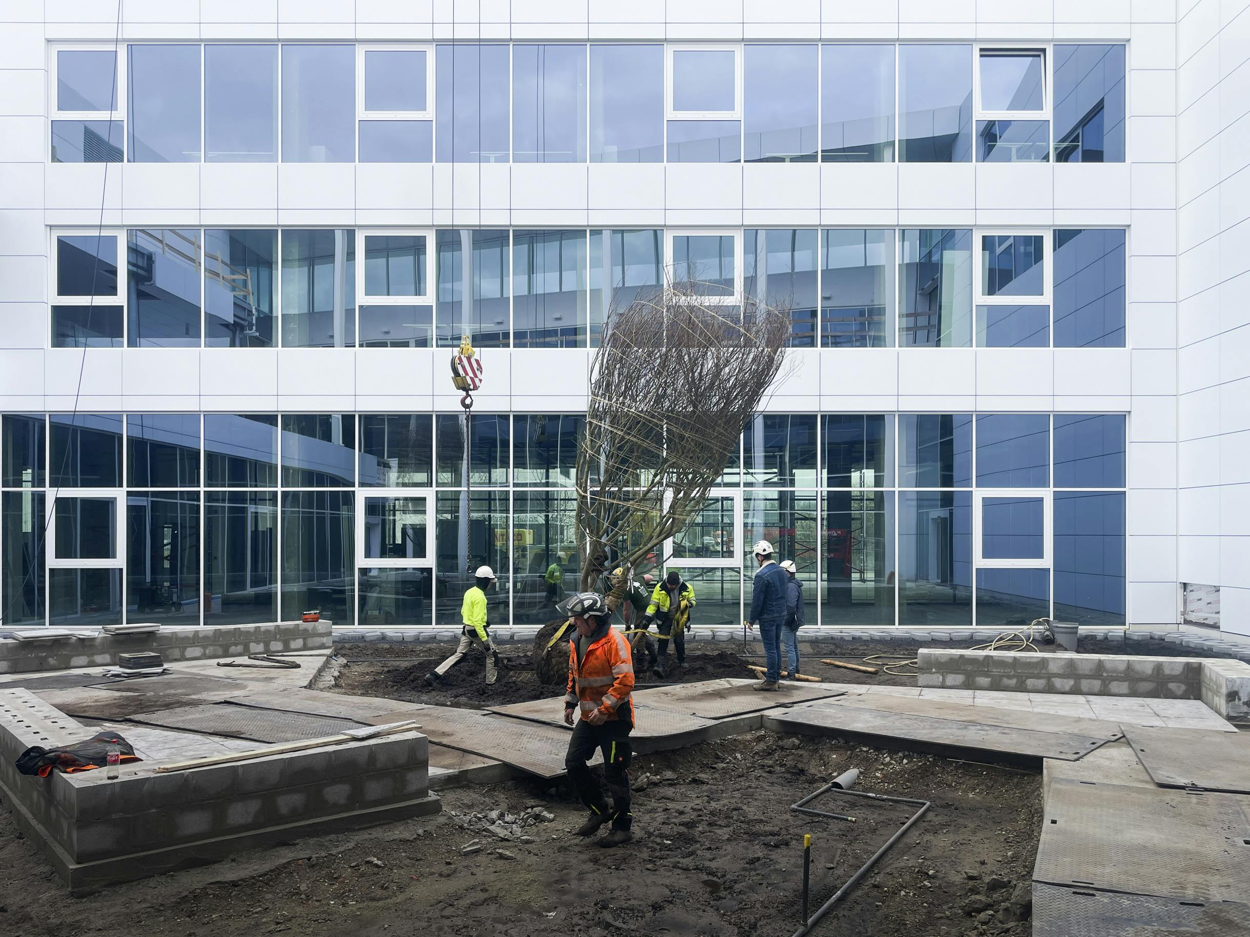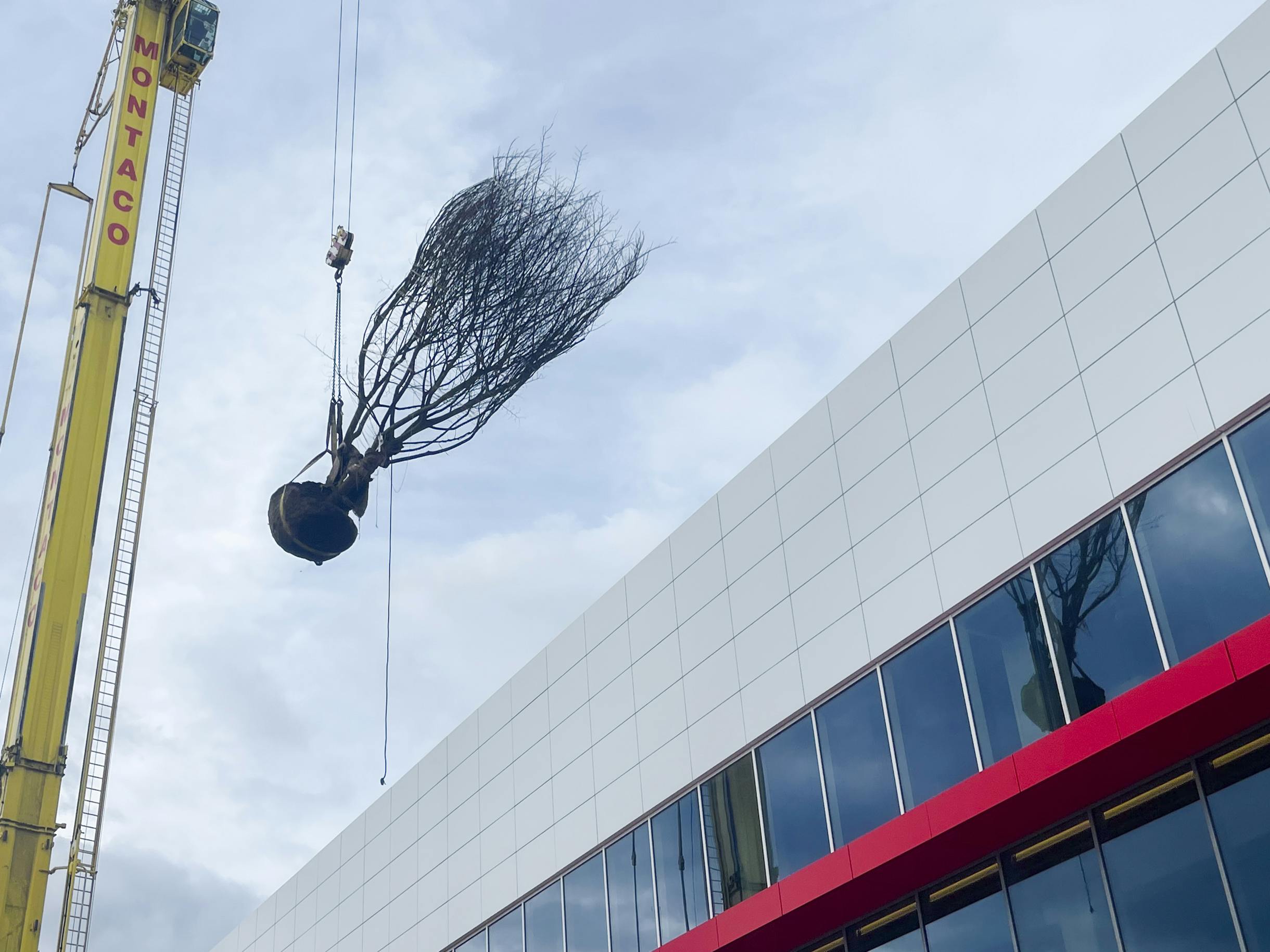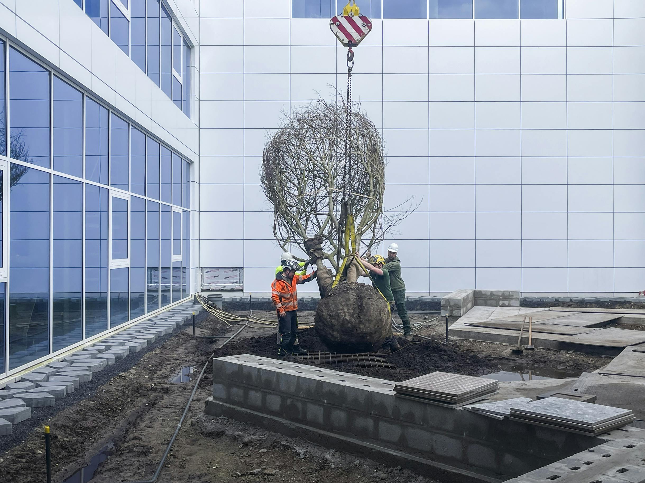 Ondertussen werden in de patio twee monumentale meerstammige Zelkova Serrata’s - oftewel Japanse schijniepen - geplaatst die door de stichter en voorzitter Baron Victor Swerts werden gekozen in de boomkwekerij van Van den Berk uit Nederland. Op die manier draagt het nieuwe gebouw van Soudal het hart en de ziel van z’n oprichter, ‘de Vic’.