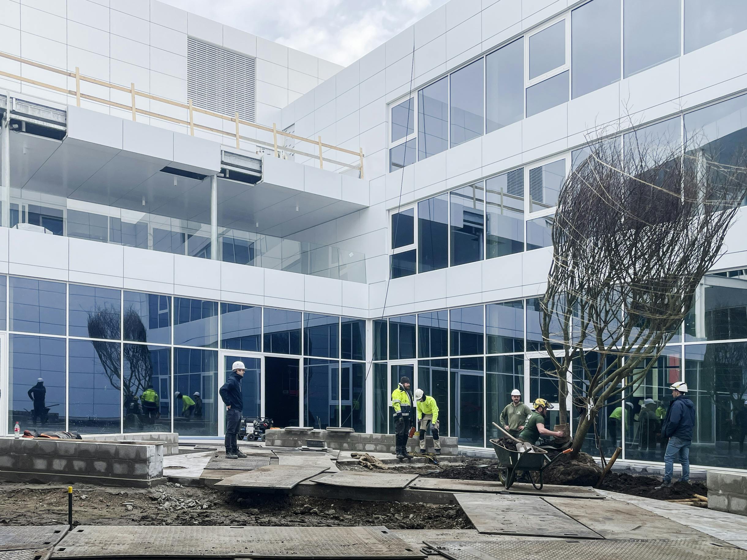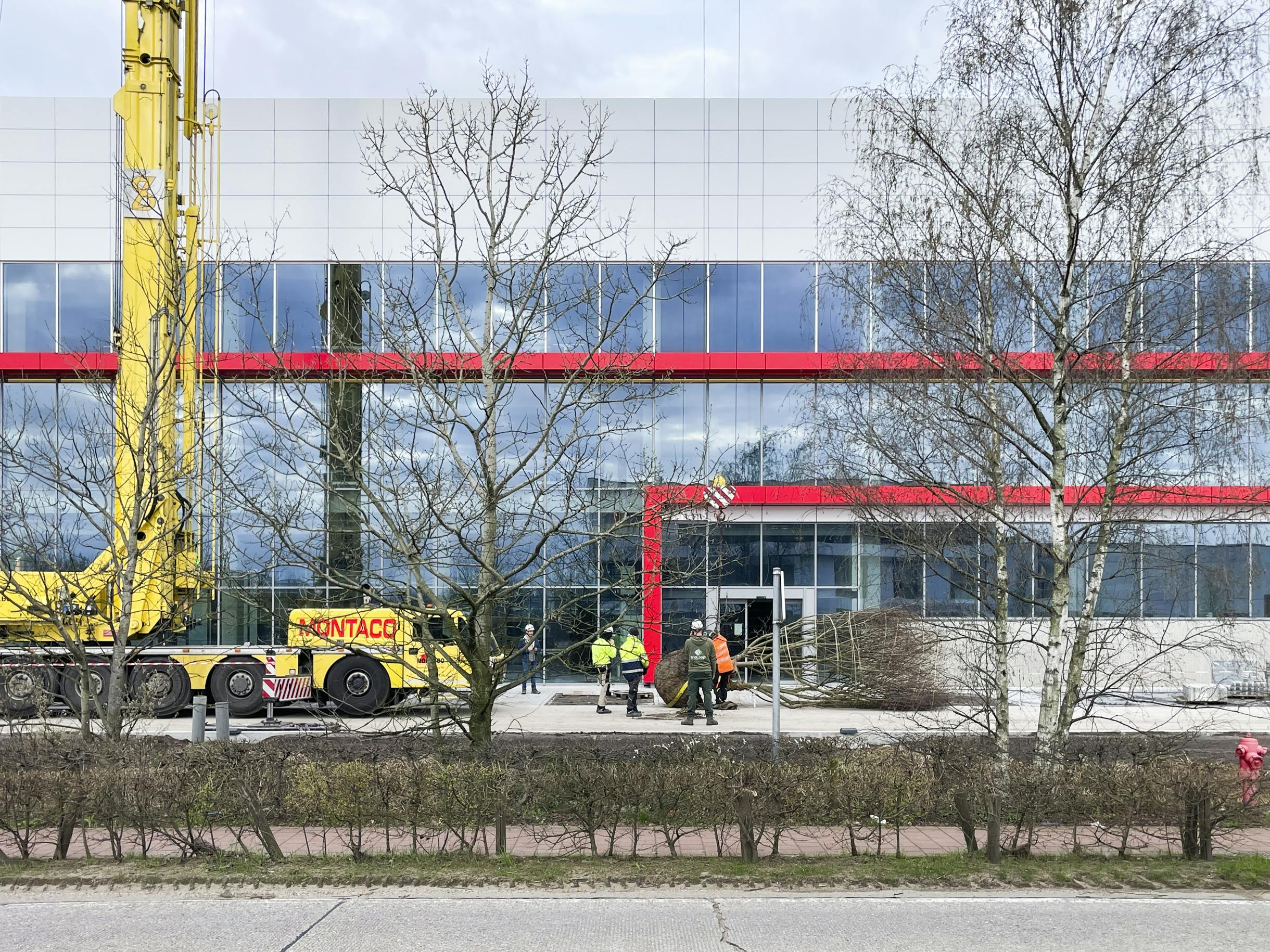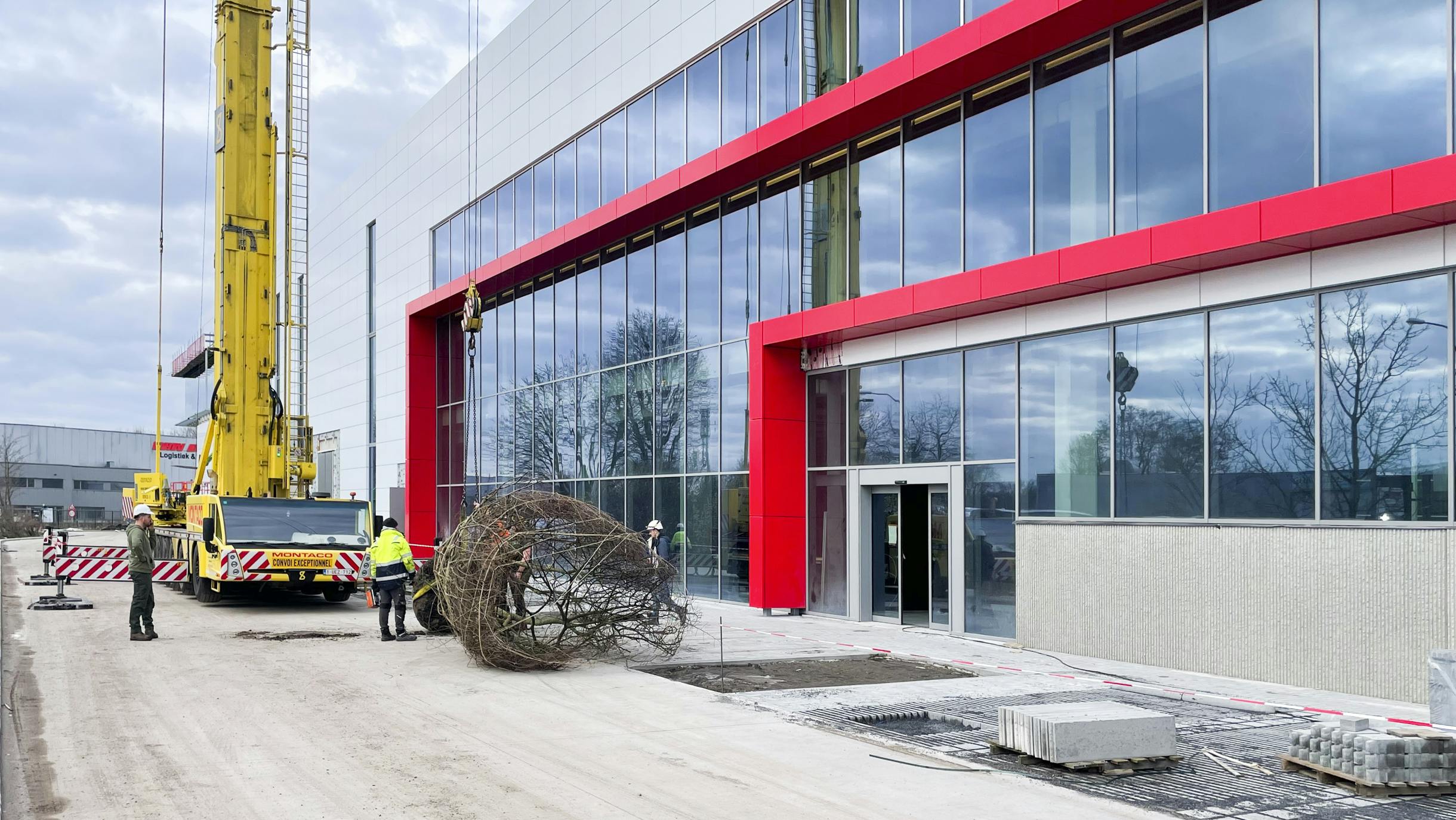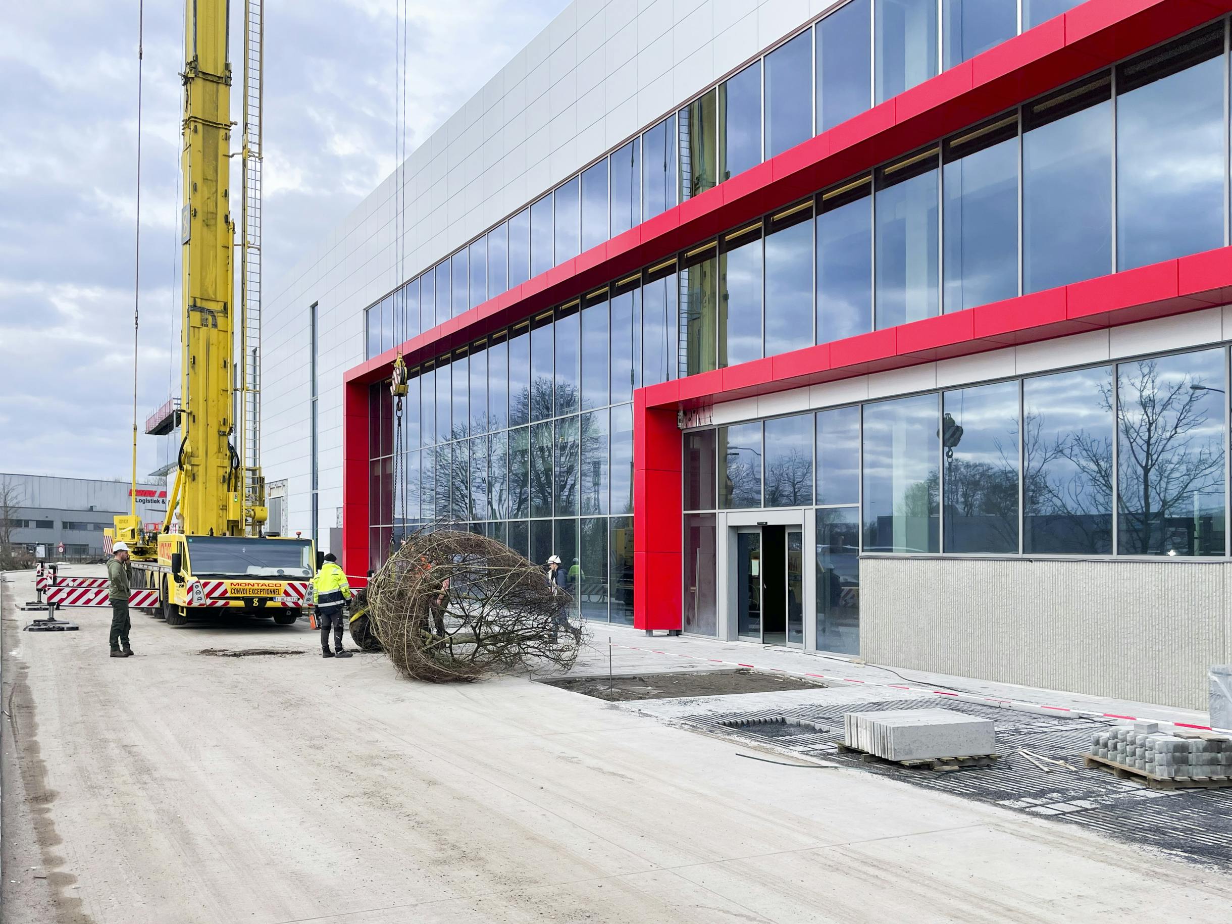 Ondertussen werden in de patio twee monumentale meerstammige Zelkova Serrata’s - oftewel Japanse schijniepen - geplaatst die door de stichter en voorzitter Baron Victor Swerts werden gekozen in de boomkwekerij van Van den Berk uit Nederland. Op die manier draagt het nieuwe gebouw van Soudal het hart en de ziel van z’n oprichter, ‘de Vic’.