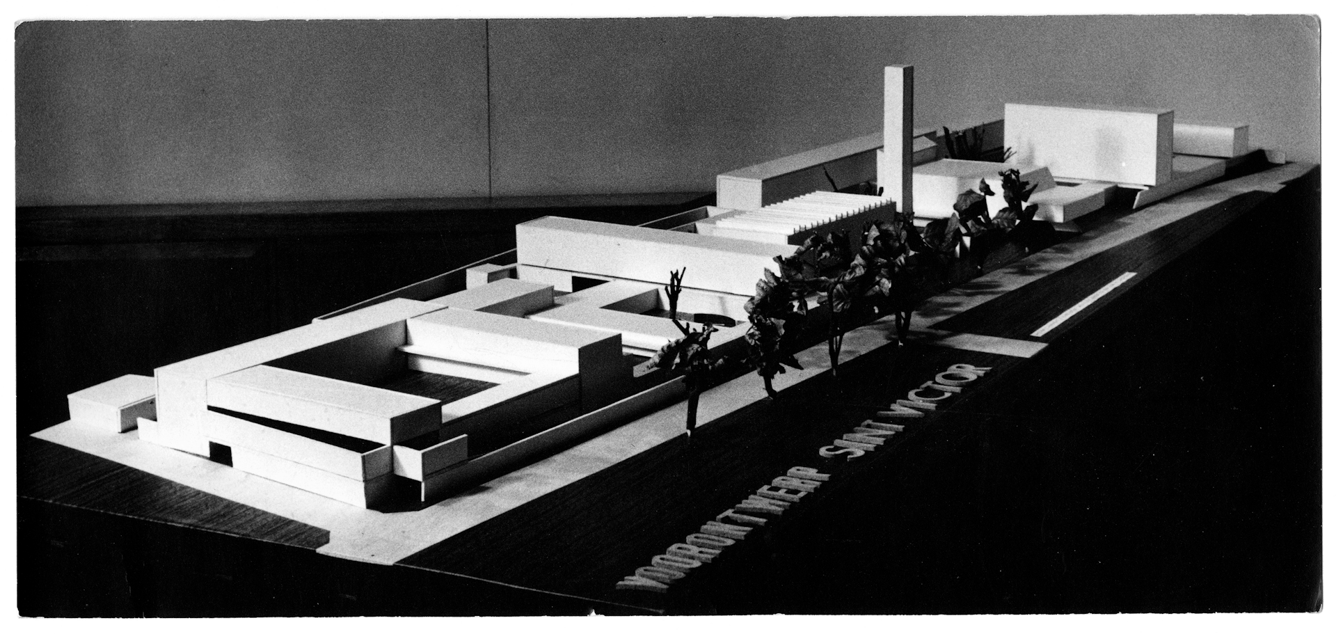 Vanaf 1962 werd onder impuls van het oud-leerlingenverbond het plan opgevat om een volledige nieuwbouw (zie foto maquette) te realiseren waarin de lagere school ondergebracht kon worden. In 1963 werden de architecten Lou Jansen en Carli Vanhout, beiden oud-leerlingen, erbij betrokken. Samen met Rudi Schiltz, associé van Jansen, werd een eerste masterplan opgemaakt. Het plan vereiste de aankoop van extra grond en opdrachtgever de Broeders van Liefde kochten de rest van de grond van de Commissie van de Openbare Onderstand aan en lieten het gods- en weeshuis Sint-Petrus, met uitzondering van de kapel, afbreken. De nieuwbouw moest een duidelijk antwoord bieden op de dominante gevangenismuur van het tegenoverliggende perceel. Toen Paul Schellekens, ook oud-leerling, zich in 1965 met Carli Vanhout associeerde, ontstond het definitieve team van vier architecten.