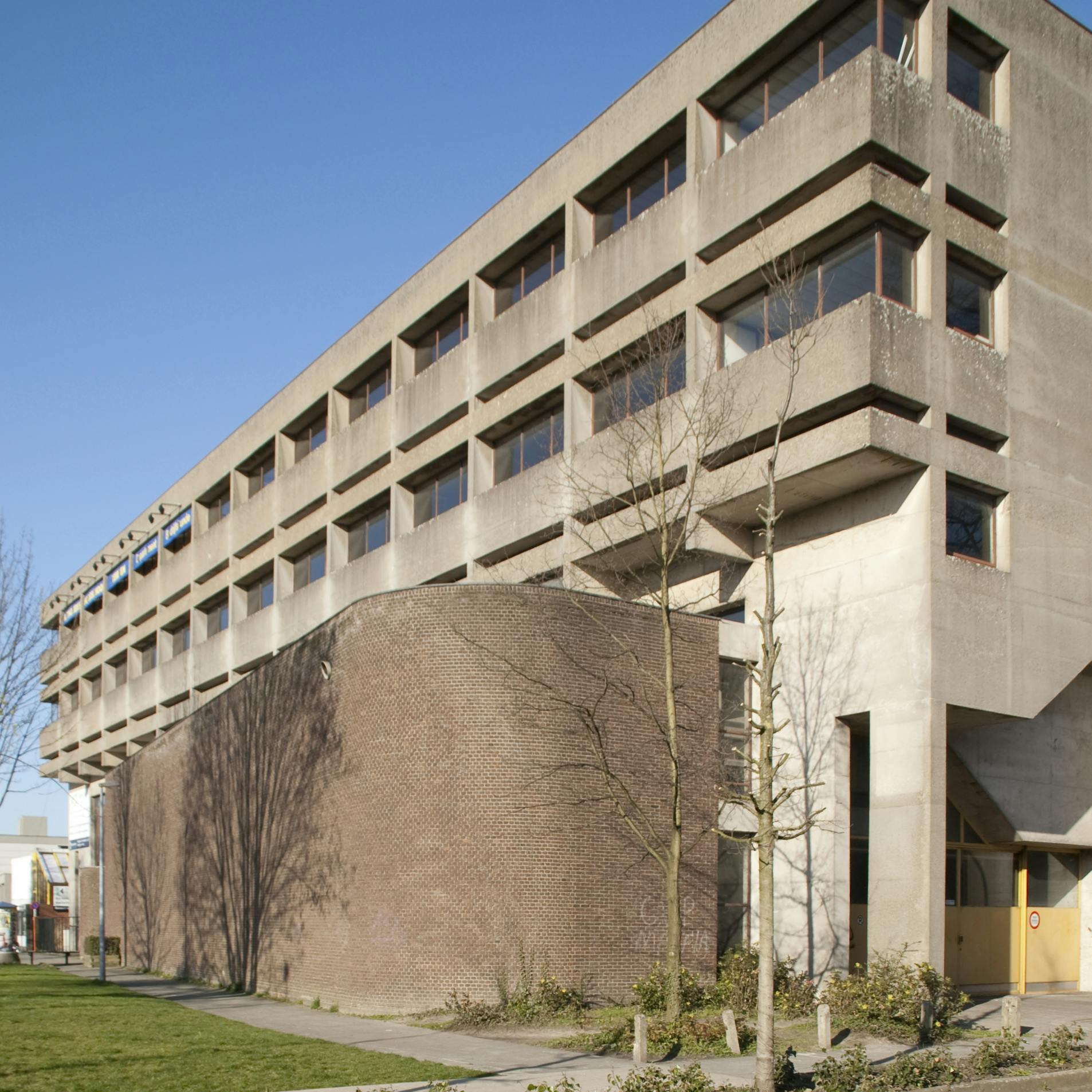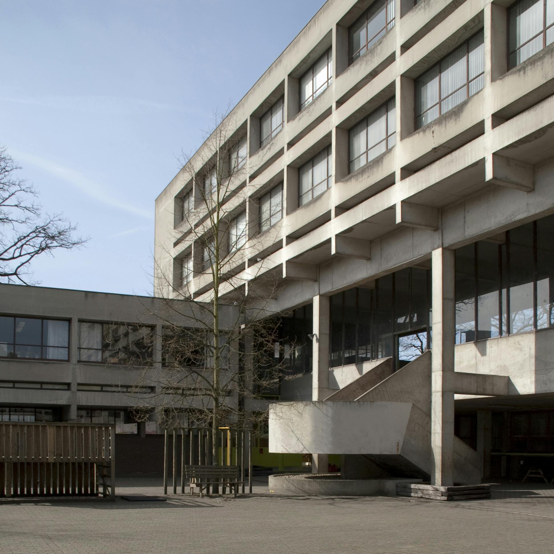 Het gebouw van het Sint-Victorinstituut is een perfect voorbeeld van waar de Turnhoutse School voor staat: brutalistische betonarchitectuur met meer dan een duidelijke knipoog naar het werk van o.a. Le Corbusier.