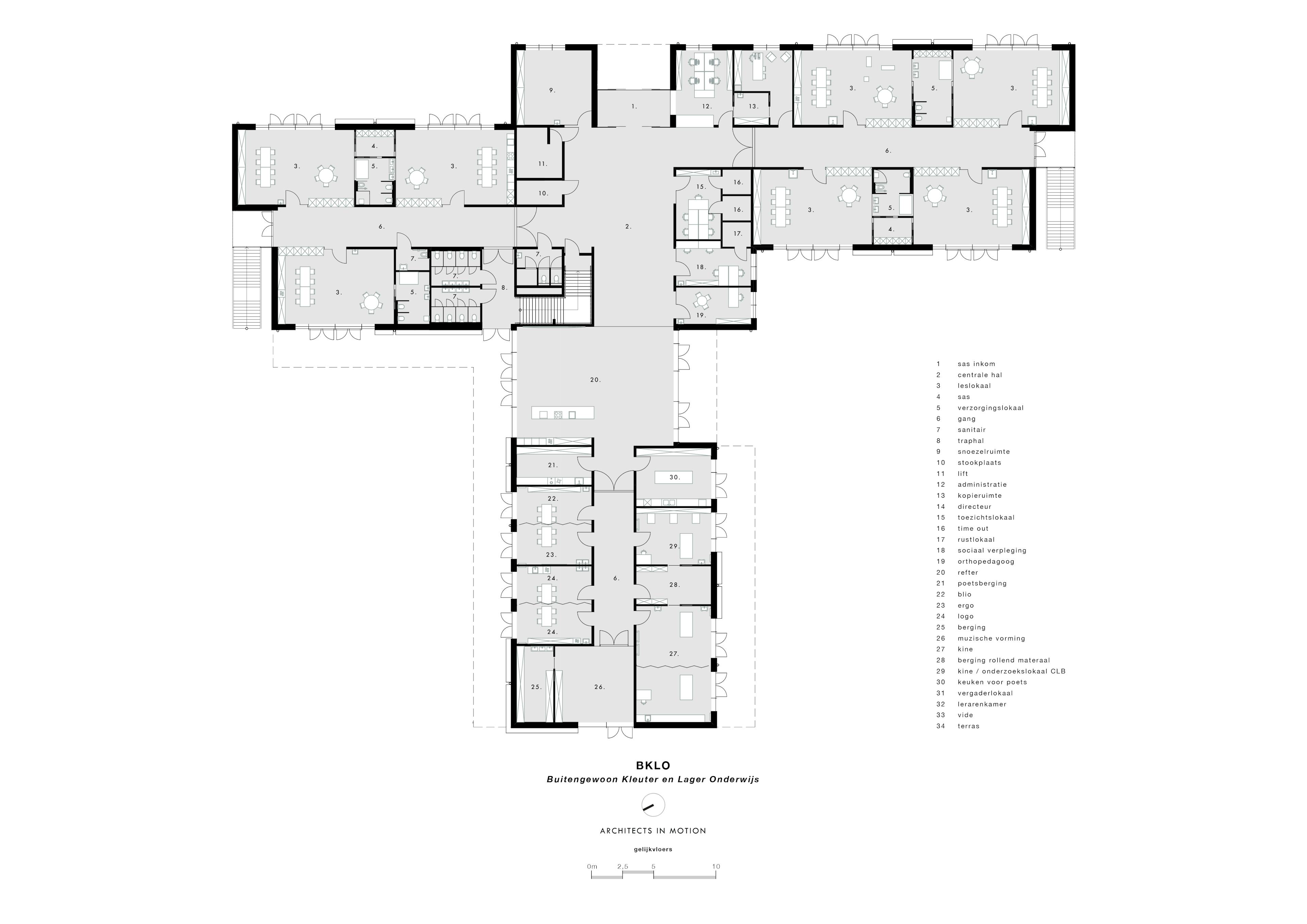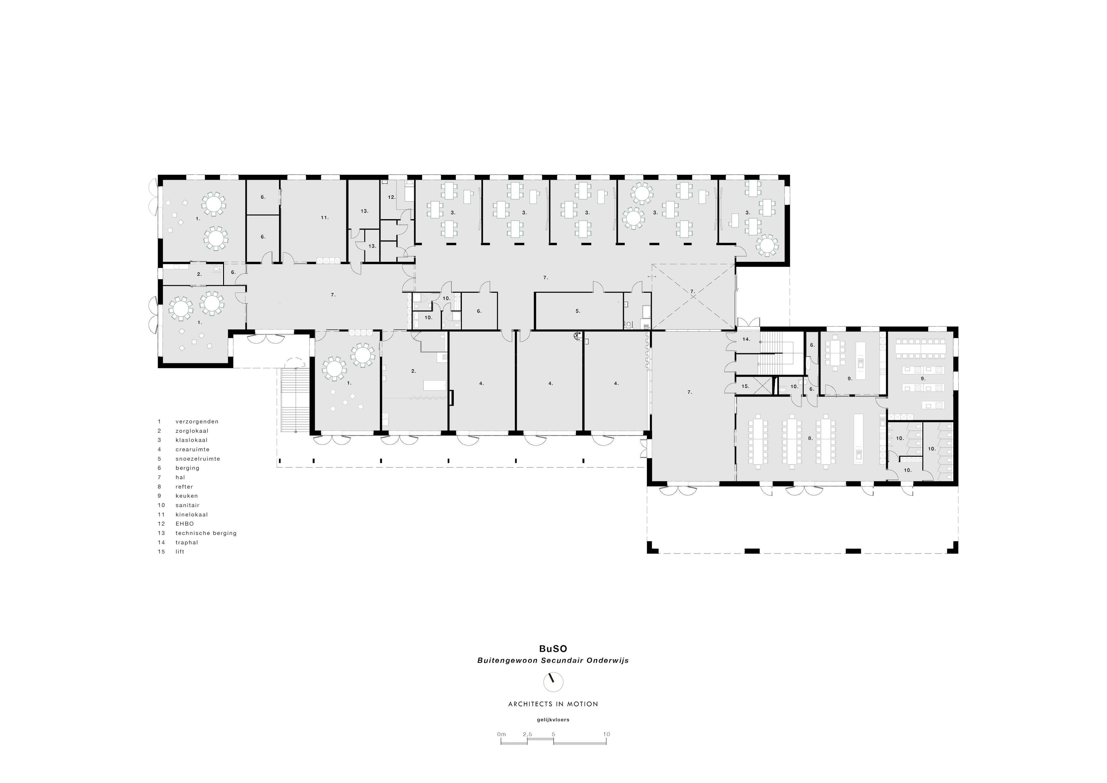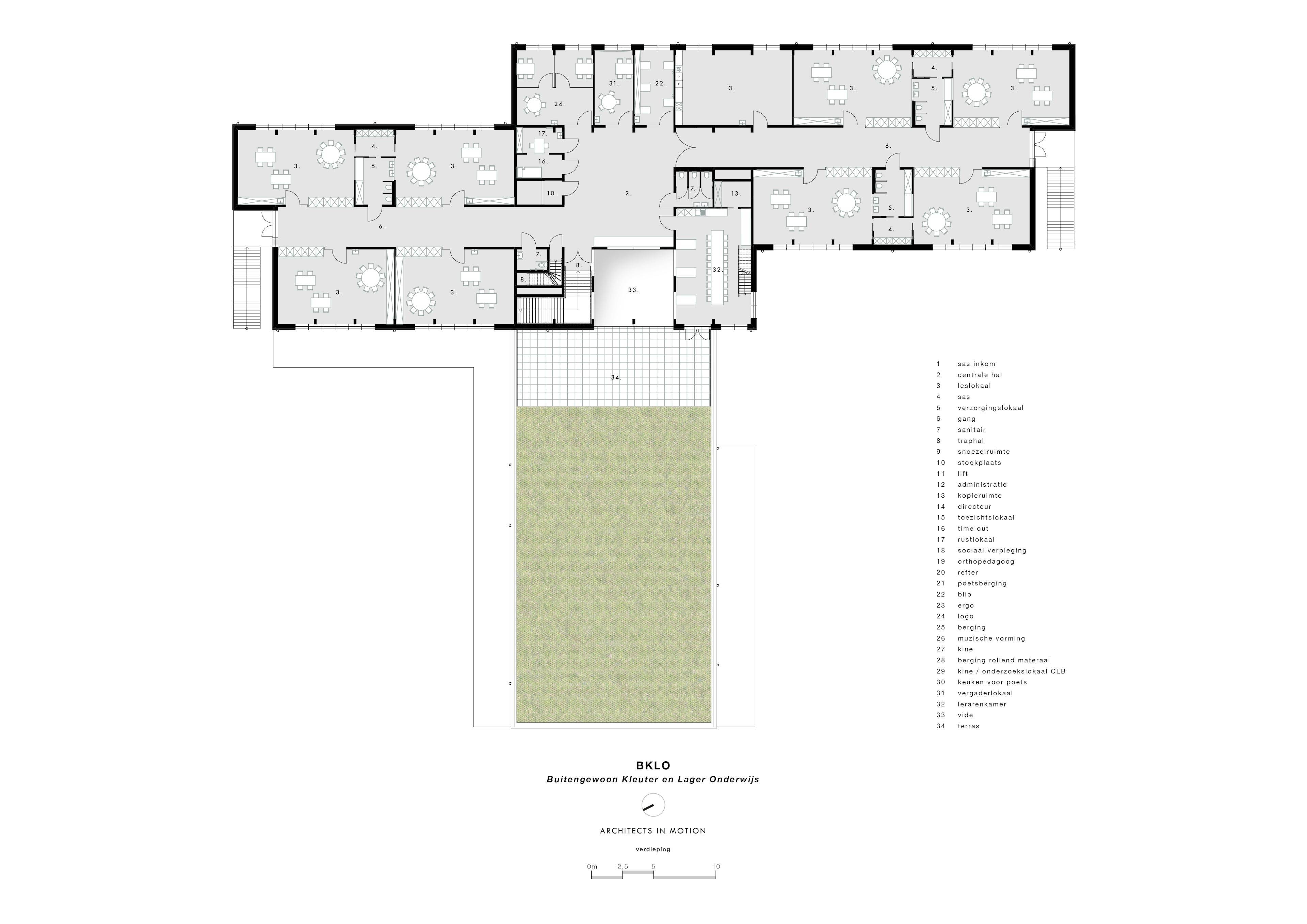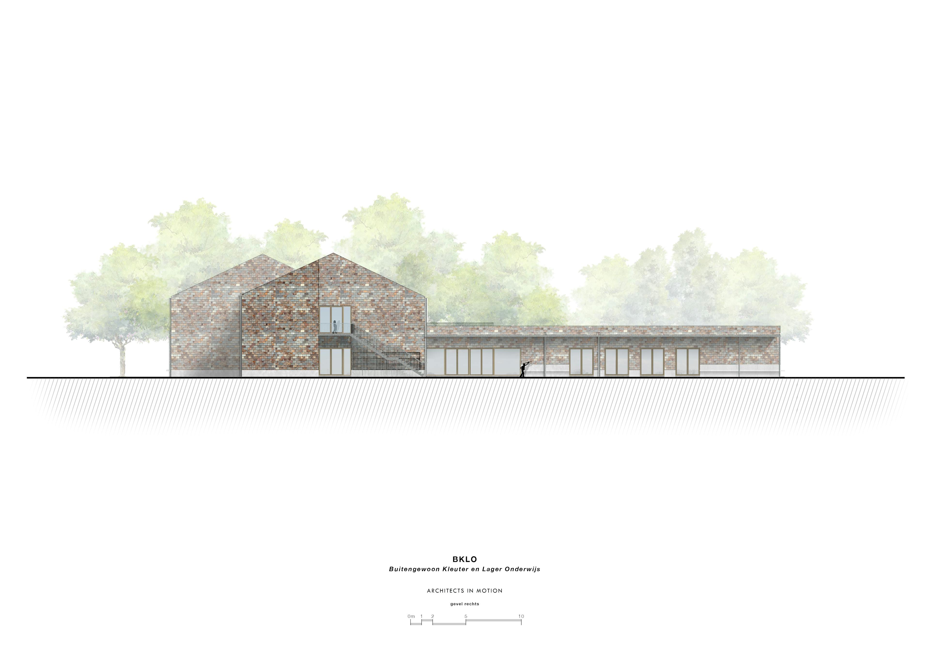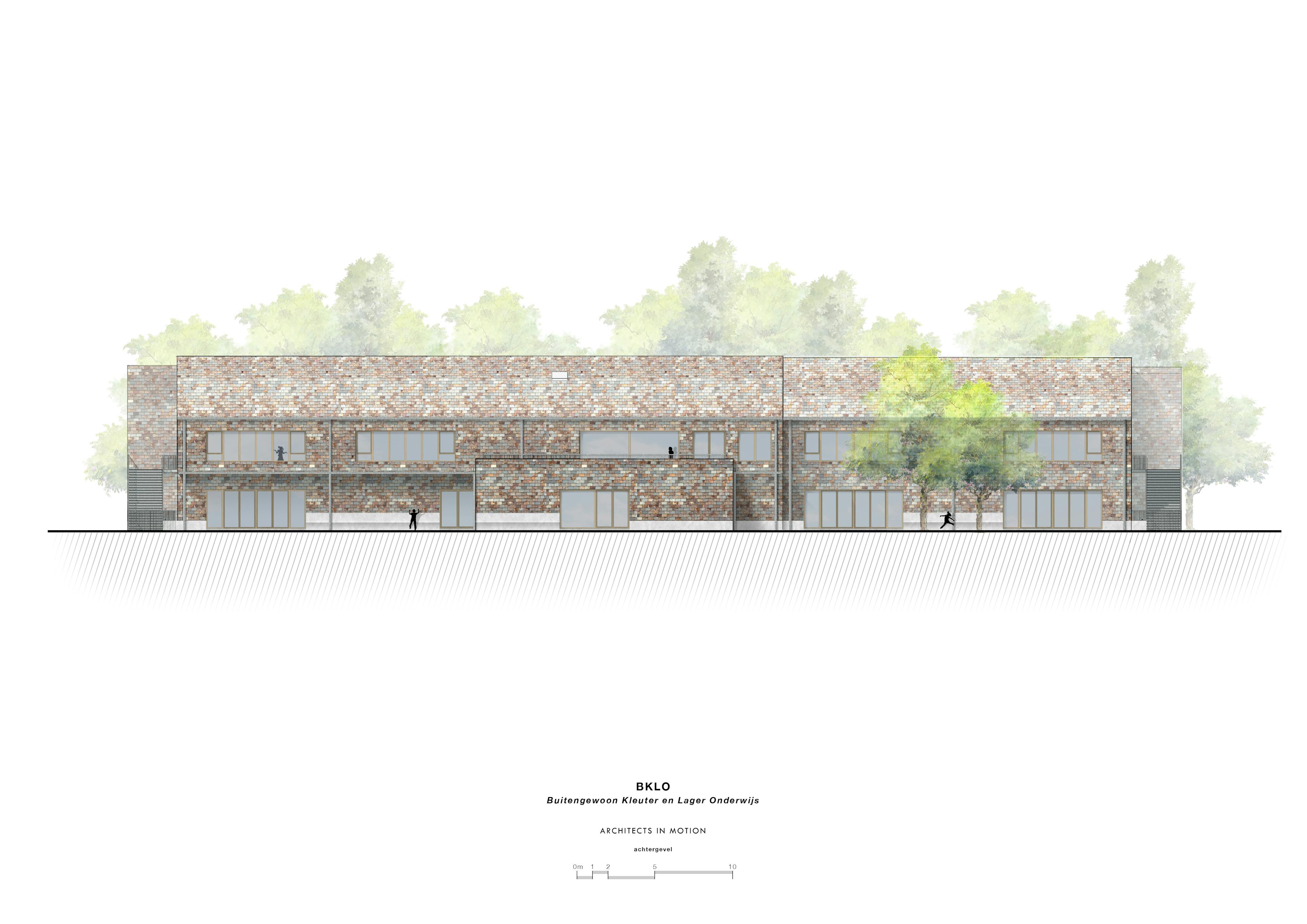 Architects in Motion toont aan dat de architectuurpraktijk meer is dan enkel ontwerpen van gebouwen en begeleiden van een bouwproces. Voeling met de opdracht, (er)kennen van de noden van de klant, inleving in de historiek van het project, optimaliseren van de financiële situatie waarin een project vorm krijgt, toekomstgericht anticiperen op mogelijke evoluties,… Rekening houden met deze diversiteit aan prolegomena resulteert in een correcte definitie van en duidelijk inzicht in de noden van de klant. Samen met OM/AR en Omgeving ontwierp AIM de eerste fase van een project dat ingebed is in een complexe bestaande context. De centrale inplanting van de scholencluster op de site De Brem en het afbouwen van de satellietcampus De Ring openen perspectieven om de werking en de beleving van personeel, leerlingen, ouders en sympathisanten van VIBO te verbeteren. De keuze om met verschillende entiteiten te werken toont het respect dat de ontwerpers hadden voor het aanwezige groen en de kwaliteiten van het landschap. Het streven om de energieconsumptie en ecologische impact van het project te beperken door zo compact mogelijk te bouwen, zijn hiervan de gematerialiseerde getuigen. Door de buurt – de serviceflats en het woonzorgcentrum – maximaal te betrekken en de kwalitatieve groenzones te maximaliseren, toont de school zich als groen ankerpunt in de wijk. Het openmaken van het zicht op het oude herenhuis en de parkvijver biedt de mogelijkheid om met de grens openbaar/privé vrijer om te gaan. Door na te denken over de mobiliteit in de buurt en de aanleg van een park and ride-strook wordt de verkeersdruk tijdens de piekmomenten aanzienlijk positief beïnvloed. De ontsluiting van het geheel kan op verschillende manieren gebeuren. Het project biedt voor de later geplande tweede fase alle kansen tot slagen.