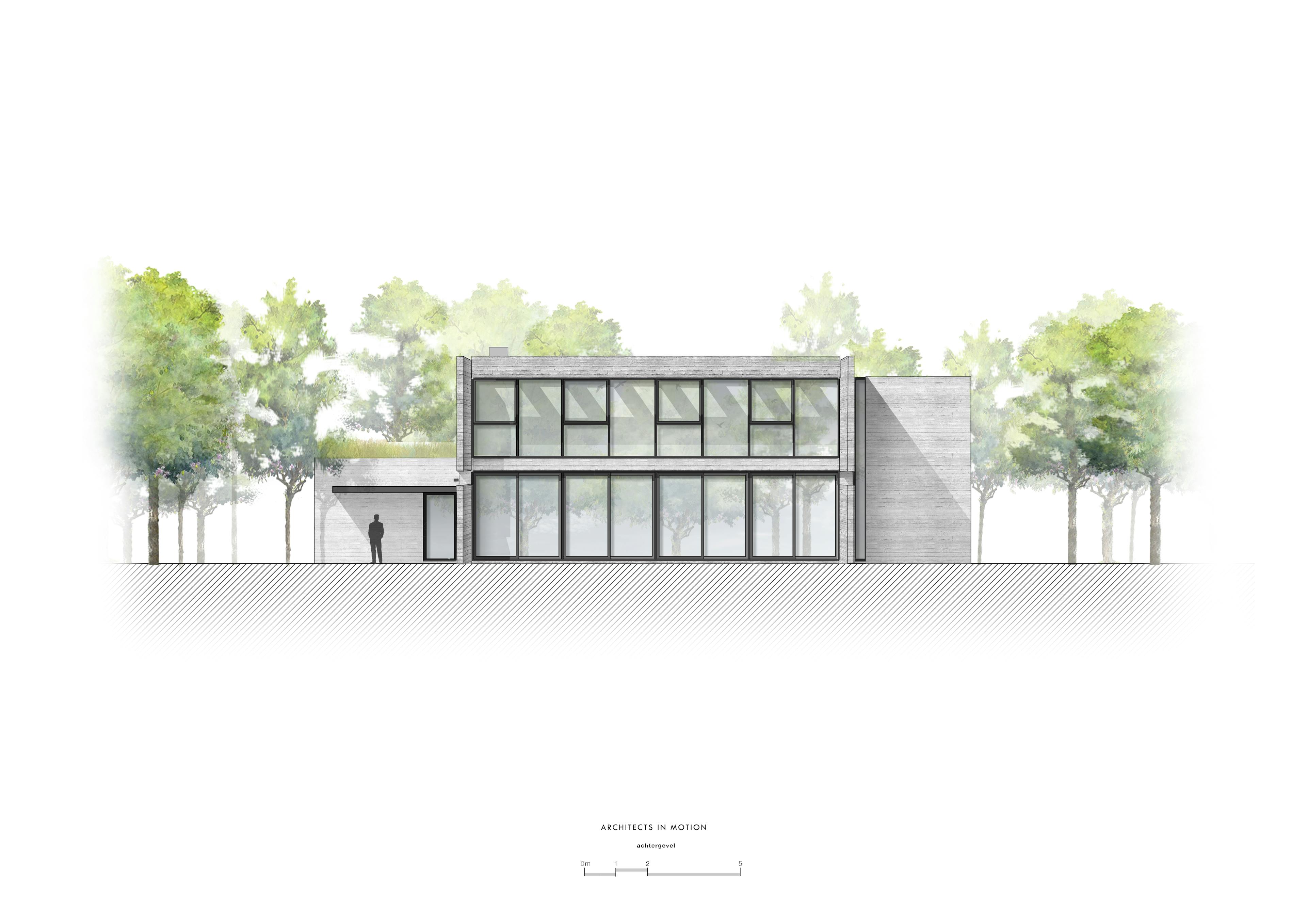 Tijdens verschillende prefiguratieve brainstormsessies met Igor Campos, waarbij schetsen werden uitgewisseld en het experimentele niet werd geschuwd, werd een intense voorstudie van het programma in een architecturale visie gegoten en evolueerde het ontwerp in verschillende stadia tot een eenvoudig plan waarbinnen de complexiteit van de wensen van de bouwheer, het programma en de externe parameters georganiseerd werd rond een duidelijk afleesbare structuur. De karakteristieke aspecten van de Braziliaanse en Juliaan Lampens’ betonarchitectuur werden vertaald naar een bijzonder hedendaags en tevens haalbaar concept waarbij de spanning tussen die functionele complexiteit en de transparantie van de architectuur tot een esthetisch evenwicht werden herleid. Een voorafgaandelijke raming werd door een in terplaatse gestort zichtbeton gespecialiseerde aannemer opgemaakt om het ontwerp te toetsen met de financiële realiteit van de opdrachtgever.